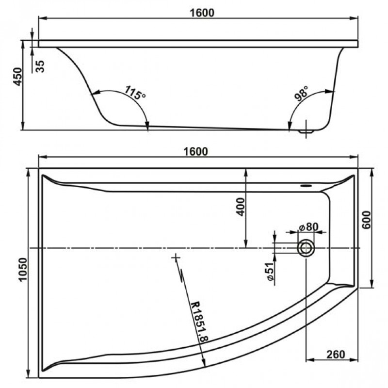 Vagnerplast VERONELA vaňa 160x105x45 pravá VPBA160VEA3PX-01/NOPrevedenie : rohová