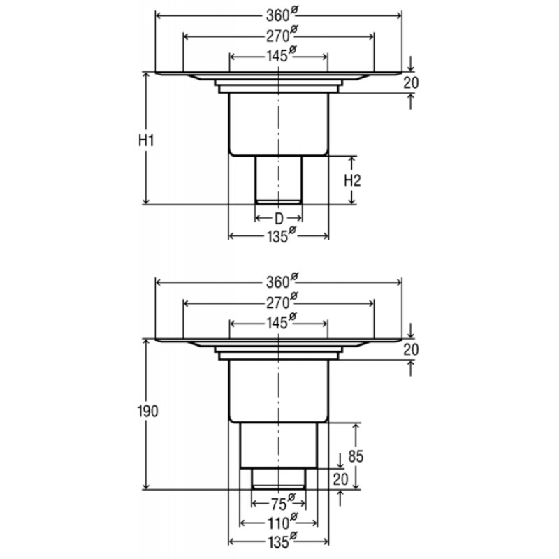 Uvedené odtokovej výkony zodpovedajú výške vzdutia 20 mm ( kúpeľňové a podlahové odtoky )