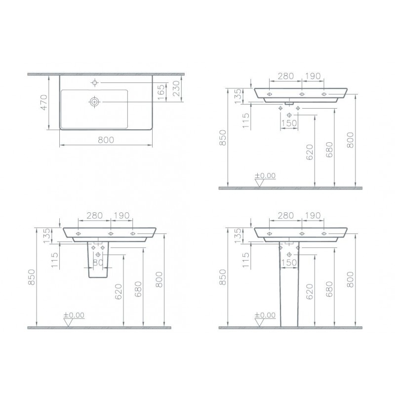 VITRA T4 umývadlo asymetrické s otvorom 80 x 47 cm, biele 4453-003-0001Rozmer: 80 x 47 cm