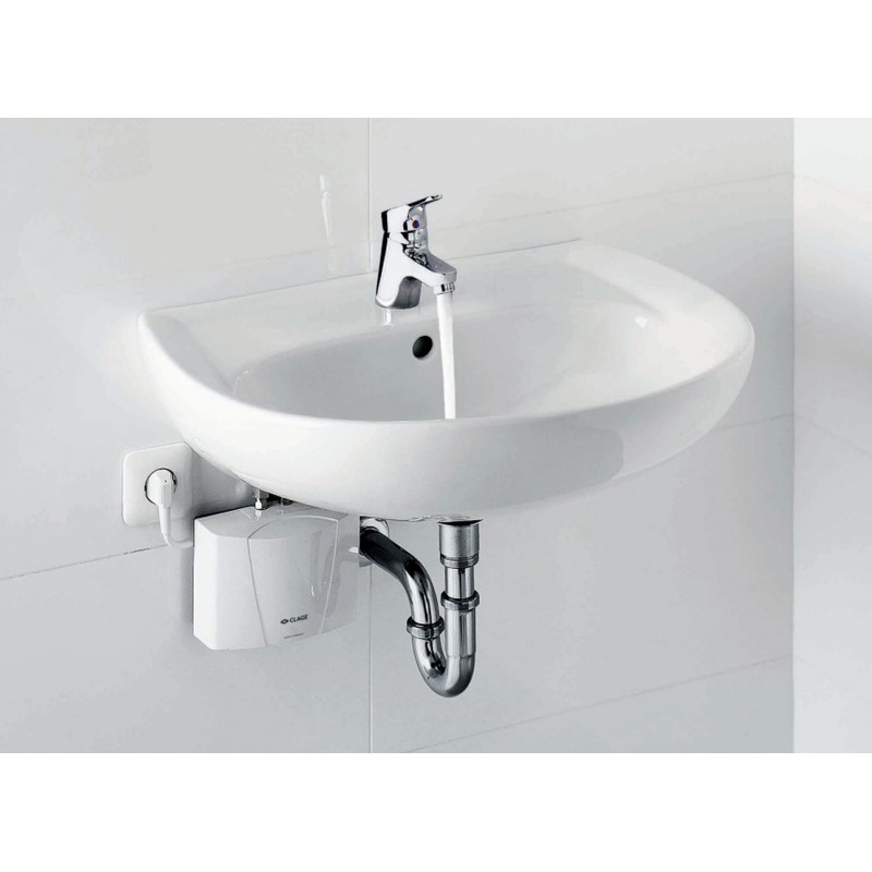 CLAGE M3 END – malý prietokový ohrievač vody pod umývadlo s batériou