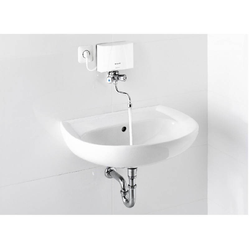 CLAGE M7 SMB je malý hydraulicky riadený elektrický prietokový ohrievač vody s výkonom 6,5 kW, dodávaný ako kompletná sada s beztlakovou batériou SMB a otočným výtokovým ramienkom. Je určený na montáž nad umývadlo alebo kuchynský drez a zabezpečuje okamžitý ohrev vody priamo pri prietoku.