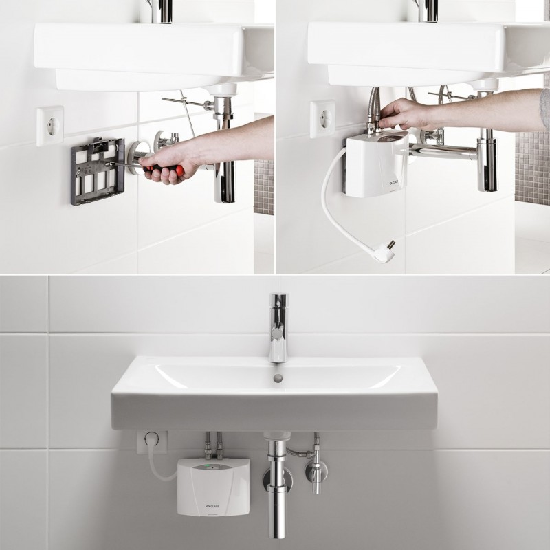 CLAGE MBH 4 je hydraulicky riadený malý prietokový ohrievač vody určený na energeticky úspornú prípravu teplej vody priamo pri umývadle alebo dreze. Ohrievač pracuje pri tlakovej inštalácii s bežnými armatúrami.