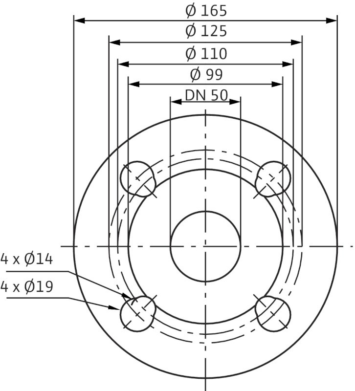 • Štandardné vyhotovenie pre čerpadlá DN 32 až DN 65: kombinovaná príruba PN 6/10 (príruba PN 16 podľa EN 1092-2) pre protipríruby PN 6 a PN 16