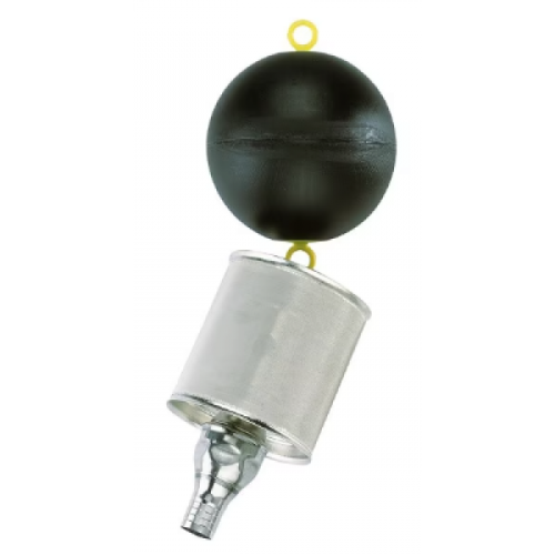 Plávajúci jemný filter na strane nasávania pre odber predfiltrovanej dažďovej vody v blízkosti povrchu pre účely ochrany následne zapojeného zariadenia na rozvod dažďovej vody.