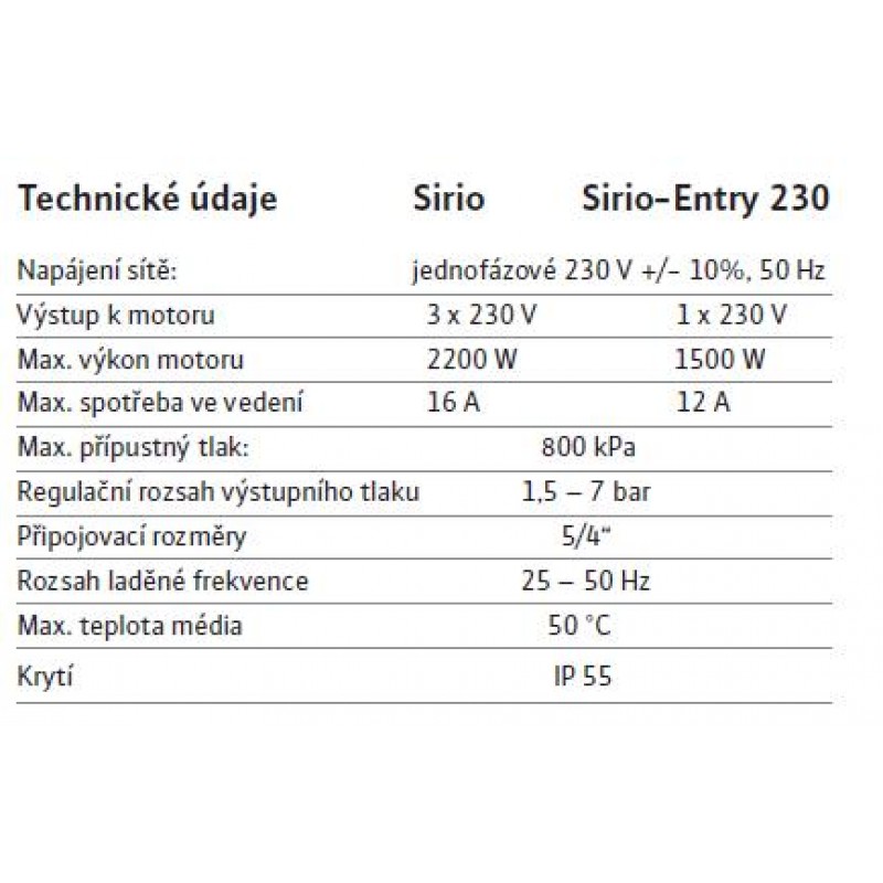 Regulátor, využívajúci frekvenčného meniča k plynulej regulácii otáčok= Najúspornejší regulácia točivých strojov, ponúka okrem plynulého nastavenia výstupného tlaku z čerpadla, tiež ochranu proti preťaženiu, alebo ochranu proti behu na sucho. V prípade zakúpenia tohto zariadenia v sete s čerpadlom WILO sú nastavené hodnoty istenie už pri predaji. V prípade zakúpenia samostatného výrobku SIRIO, je priložený podrobný návod umožňujúce nastaviť regulátor na optimálne hodnoty
