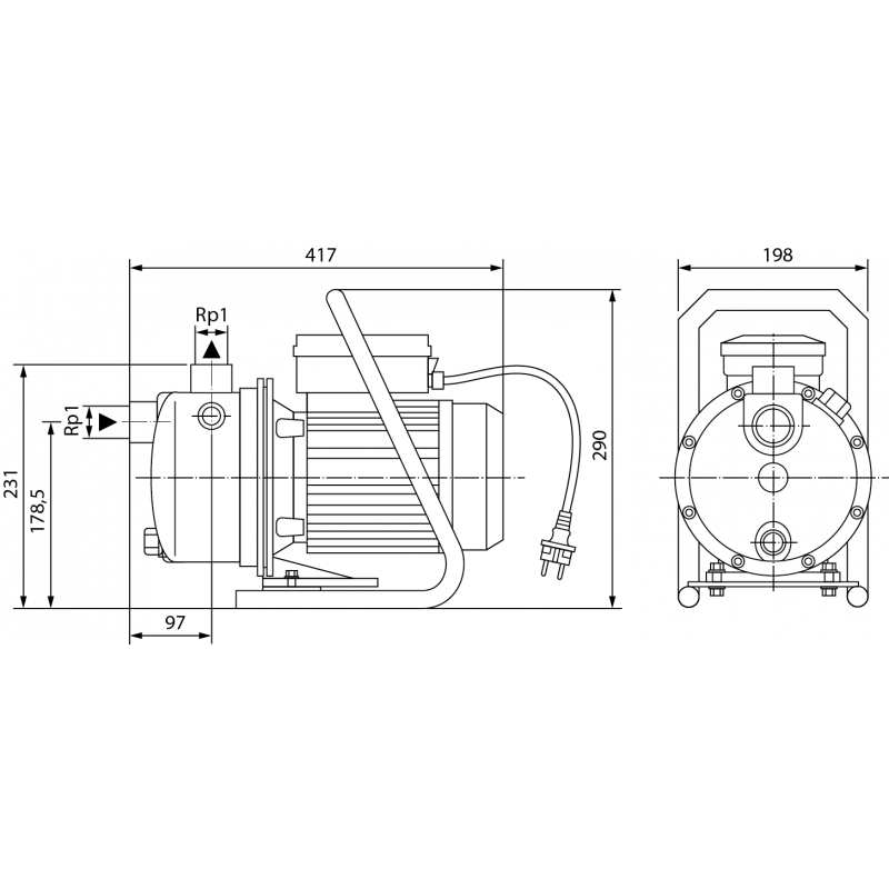Model je vybavený integrovaným vypínačom a praktickou rukoväťou na jednoduchú manipuláciu. Súčasťou je aj 2-metrový napájací kábel s odolnou zástrčkou, čo umožňuje okamžitú prevádzku bez ďalšej montáže. Všetky komponenty sú vyrobené z antikoróznych materiálov pre dlhú životnosť.