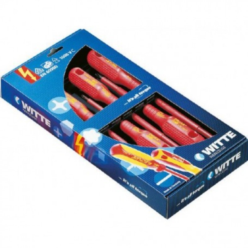 WITTE VDE TRIAX 7-mi dielna sada šrobováků a skúšačky napätia 620584Sada elektrikárskych skrutkovačov WITTE VDE, obsahuje 7 dielov: