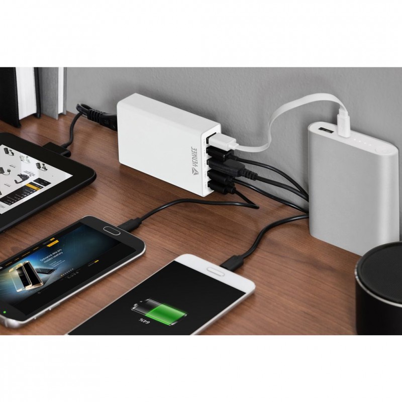 Nabíjacia stanica s 5 portami USB má celkový výstupný výkon 40W / 8A a umožňuje súčasné nabíjanie niekoľkých zariadení. Optimálne nabíjanie je zaistené pomocou vstavanej inteligentné IC detekcie zariadenia a na jednom porte je k dispozícii max. Výstupný prúd 2,4 A. Táto nabíjacia stanica je kompatibilná s rôznymi tablety, smartfóny a ďalšími zariadeniami napájanými z USB. Bezpečnostné funkcie, ako napríklad ochrana proti prepätiu, nadprúdu, teplote a skratu zaisťujú nepretržitú bezpečnosť vás i vašich zariadení. Táto stanica je ideálne riešenie nabíjania pre celú rodinu doma i na cestách.