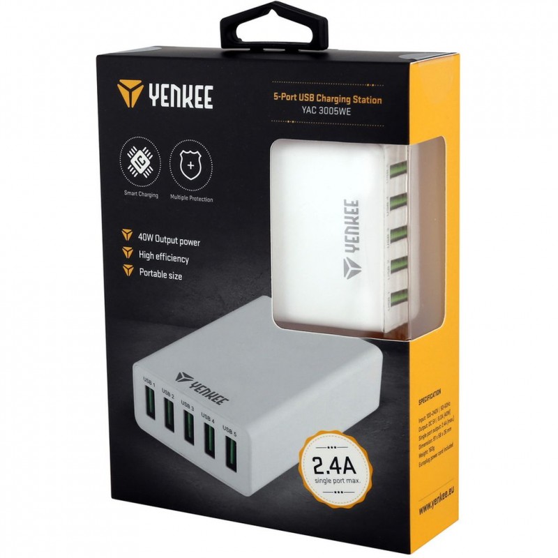 YENKEE YAC 3005WE USB nabíjačka 5port 8A 30015712Nabíjacia stanica s 5 porty USB