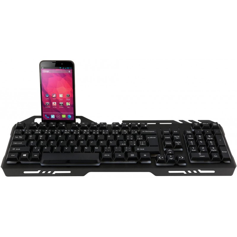 K dispozícii je celkom 9 režimov podsvietenia (vrátane vypnutia podsvietenia), ktoré môžete nastaviť podľa aktuálneho použitia, typu hry alebo prostredia. Odolné "rubber dome" klávesové spínače sú konštruované tak, aby zaručili rýchlu odozvu a poskytli vám pocit, ktorý je špecifický pre mechanické klávesnice. Praktický držiak zaistí, aby ste svoj telefón mali stále v dohľade a nepremeškali v zápale boja žiadne dôležité správy alebo hovory. Zamknutie klávesy Windows ( "Win-lock") vám umožňuje deaktivovať funkciu tejto klávesy a zabrániť náhodnému vyvolanie úvodnej obrazovky systému Windows počas hrania hier. 19 kláves s funkciou "Anti-ghosting" podporuje súčasný stisk niekoľkých klávesov, bez toho aby došlo k akémukoľvek konfliktu alebo zlyhanie príkazu. Multimediálne klávesy vám umožňujú spúšťať a ovládať najpoužívanejšie aplikácie stlačením jedinej klávesy.
