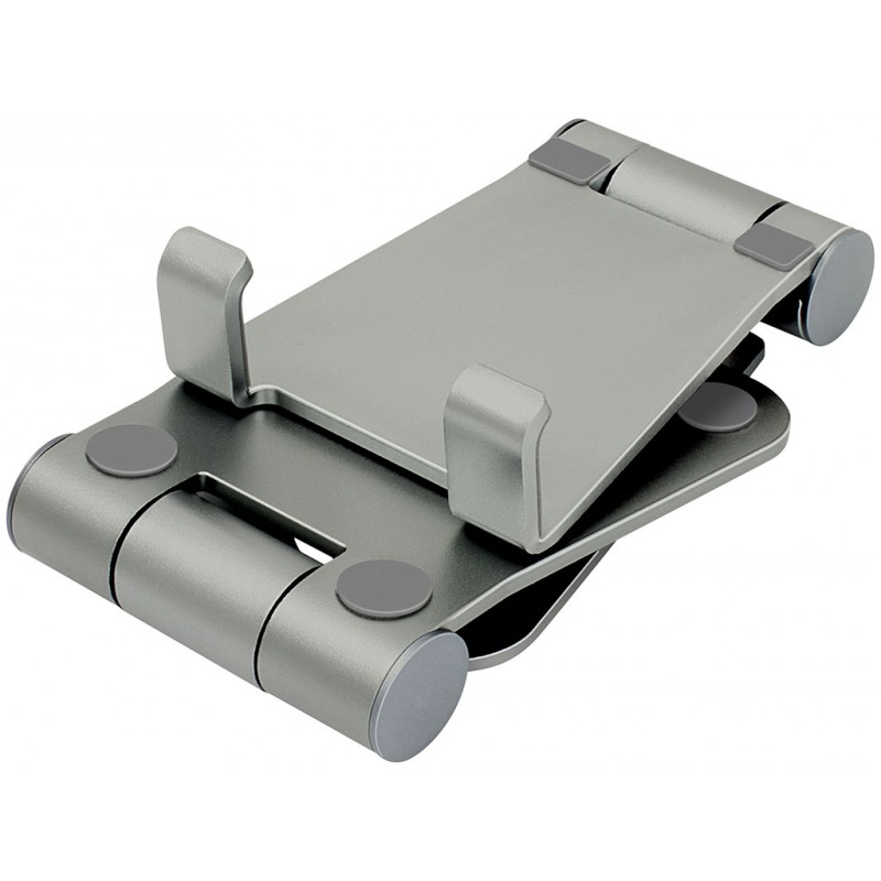 Stolový kovový držiak vhodný pre mobilné telefóny a tablety do maximálnej veľkosti uhlopriečky 7"". Ideálny sklon a výšku nastavíte vďaka dvom polohovateľným kĺbom. Držiak je možné zložiť do vodorovnej polohy vhodnej na prepravu. Zariadenie môžete položiť na držiak v horizontálnej alebo vertikálnej polohe. Výrezy na káble podporujú nabíjanie zariadenia počas položenia na držiak.