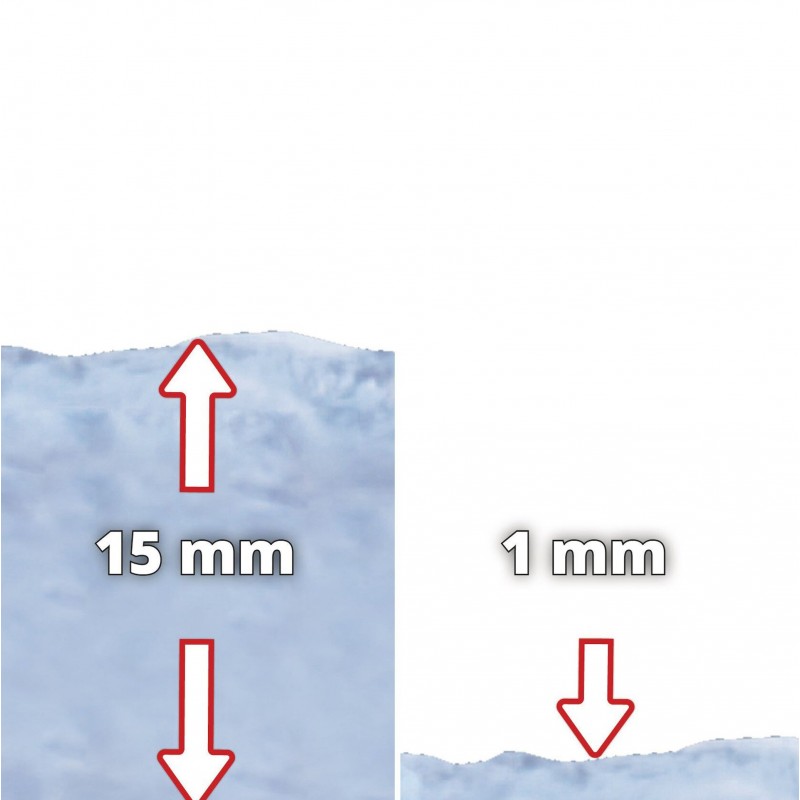 - Čistá voda: ploché sanie až do zvyškovej hladiny 1 mm