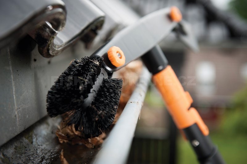 - Kombinácia kefy a škrabky umožňuje dokonalé čistenie odkvapov