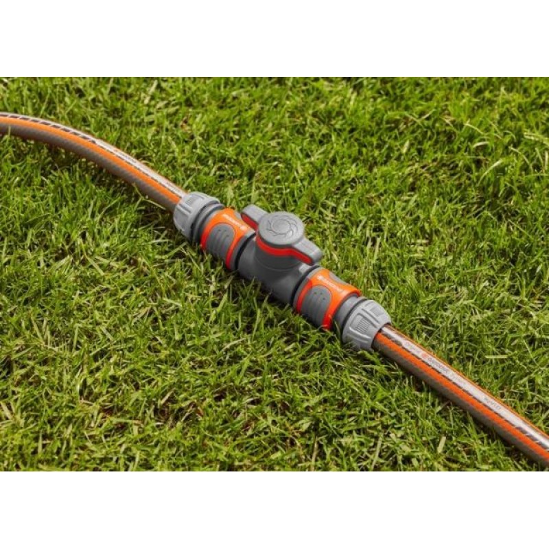 Gardena 18266-20 spojka s prietokovým ventilom umožňuje pohodlnú reguláciu prietoku vody priamo na záhradnej hadici. Intenzitu jednoducho nastavíte alebo vodu úplne zastavíte bez potreby vracať sa ku kohútiku.