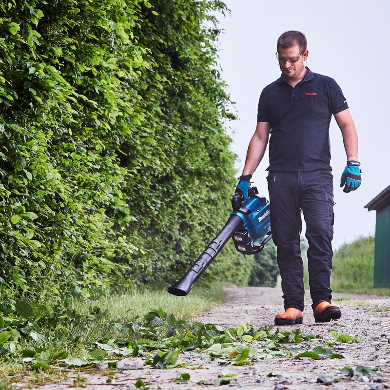 Vďaka bezuhlíkovému motoru a vysokému prietoku vzduchu až 13,4 m³/min si poradí s mokrým lístím, pokosenou trávou aj drobnými nečistotami. Premena na vysávač je rýchla (súprava na vysávanie je súčasťou dodávky) a drviace nože v sacej trubici redukujú objem nasatého materiálu, čím zvyšujú kapacitu zberu. Súčasťou balenia sú 2× akumulátor BL1850B (5,0 Ah) a dvojitá rýchlonabíjačka DC18RD.