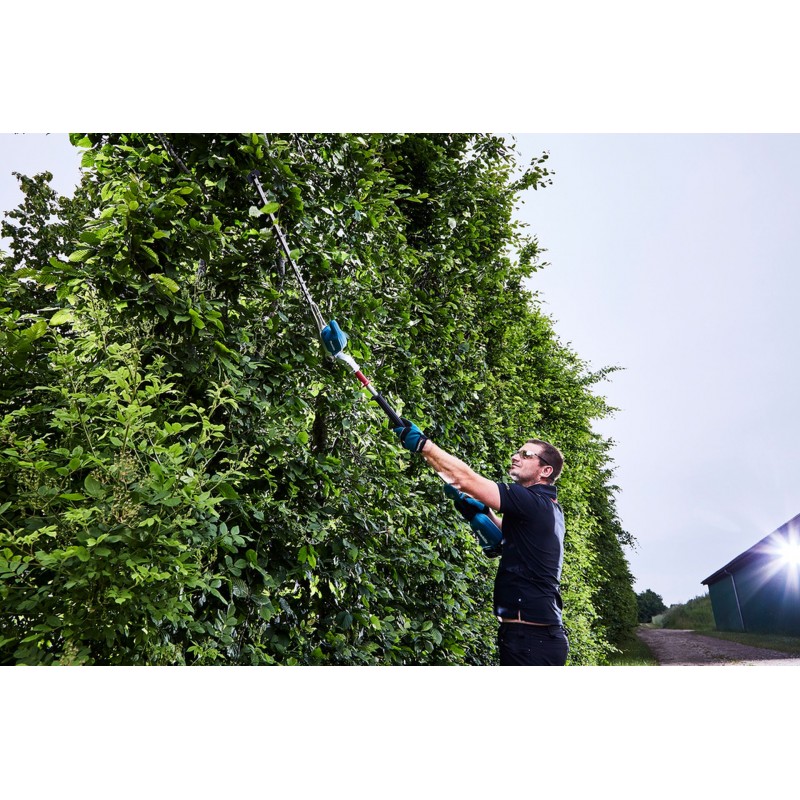 Obojstranne brúsené nože s optimalizovaným profilom zubov zabezpečujú čistý a rýchly rez. Tri rýchlostné stupne (až 4 400 strihov za minútu) umožňujú zvoliť optimálne tempo práce podľa hustoty porastu. Spätný chod navyše pomáha uvoľniť zaseknuté vetvy, čo oceníte pri práci v hustom alebo prerastenom živom plote.