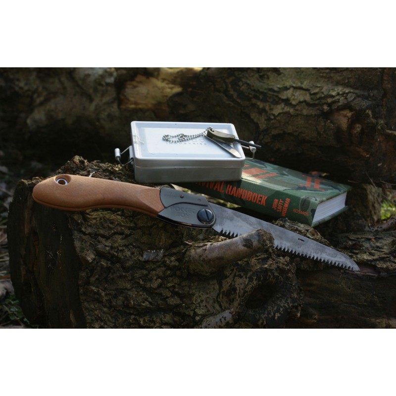 Pocketboy je vybavený unikátnou 17 cm kalenou čepeľou so zubami Silky Mirai-Me s hustotou 10 zubov na 3 cm. Píla sa doslova zakusne do dreva a pevne drží v reze. Je preto skvelým pomocníkom pri rezaní nad hlavou aj v nízkych polohách, pod úrovňou kolien. Pílu je možné jednoducho zložiť a rozložiť pomocou aretačného tlačidla, pričom ponúka dve polohy rezania. Vďaka zárezu v čepeli ju možno jednoducho otvoriť aj v rukaviciach. Rukoväť obsahuje otvor na pripevnenie šnúry alebo karabíny a v zloženom stave dokonale chráni zuby, takže pílu môžete bezpečne uložiť do batohu.