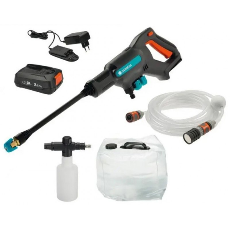 GARDENA predstavuje čistič AquaClean 24 / 18V P4A vyrobený špeciálne pre vás a všetky ďalšie pyšné a vášnivé majiteľov domov a záhrad. Je to vášeň poháňaná značkou GARDENA. Tento mobilný, kompaktný a bezkáblový strednotlaký čistič je dodávaný s radom príslušenstva, takže môžete ihneď začať. Jeden z najuniverzálnejších tlakových čističov vo svojej triede s LED kontrolkou stavu nabitia akumulátora integrovanou do čističa a 3 nastaveniami výkonu zaisťujúcimi tlak 9, 14 a 24 barov. Ideálne pre mnoho úloh pre tlakové čističe. Pomocou nastaveného tlaku 24 bar možno dôkladne vyčistiť autá, bicykle a odpadkové koše. V prípade potreby možno tlak znížiť na 14 barov alebo prepnúť do režimu Soft-Clean. Tento režim Soft-Clean s tlakom 9 bar je obzvlášť jemný a je určený pre citlivé materiály a predmety. Znížený tlak zároveň predlžuje dobu chodu dobíjacieho akumulátora. V závislosti na prevádzkovom režime je tlakový čistič schopný pracovať cca 38, 20 alebo 16 minút. Nový strednotlaký čistič je dodávaný bez akumulátora a nabíjačky. Môžete použiť systémový akumulátor v rámci Aliancie POWER FOR ALL, ktorá je jednou z najväčších aliancií popredných svetových výrobcov akumulátorov rôznych značiek a ponúka najrôznejšie možnosti použitia okolo vášho domu a na záhrade. Alebo by ste si radšej zaobstarali výrobok so systémovým akumulátorom? Žiadny problém - v tom prípade je pre vás vhodná sada na okamžité použitie. Balenie obsahuje tri rôzne nadstavce trysiek. Trysky sa používajú k zmene uhla striekanie na 15 ° alebo 40 °, každú trysku možno pre väčšiu flexibilitu pri čistení otočiť o celých 360 ° vzhľadom k tyči. Bodová tryska 0 ° je ideálny pre výkonné čistenie v malých zákutiach. Podľa vašich požiadaviek je AquaClean kompatibilný aj s fúkačom nečistôt značky GARDENA. Sada obsahuje 5 m dlhú saciu hadicu s filtrom, plavákom a svorkou. Prívod vody je možné pripojiť k tlakovému čističu prostredníctvom šróbenie na kohútik OGS. Aj napriek tomu, že nie je moderné AquaClean pripojený k elektrickej sieti, je tak silný, že vďaka funkcii automatického sanie s prietokom 250 litrov za hodinu môže čerpať vodu z hĺbky až 2 m. Bez ohľadu na to, či chcete čistiť auto, bicykel, terasu , okenice domu alebo záhradný nábytok - inteligentný dizajn, ľahká manipulácia a nízka hmotnosť iba 1,5 kg bez akumulátora zabezpečuje pohodlnú prácu po dlhú dobu. Sada na okamžité použitie AquaClean 24 / 18V P4A obsahuje krátku a dlhú trysku pre ešte väčšiu flexibilitu a lepšiu ergonómiu. So všetkými týmito prvkami vám tento adaptívne tlakový čistič umožňuje čistenie vašej záhrady, kolesá, automobilu alebo záhradného nábytku s veľmi malým úsilím a bez ťažkopádnych káblov.parametre:
