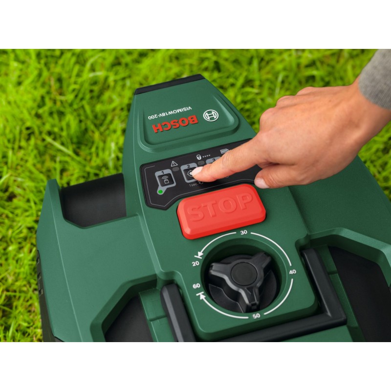 BOSCH VISIMOW 18V-200 je moderná robotická kosačka určená na automatické kosenie trávnikov až do 200 m2. Vďaka inteligentnému systému SmartVision nevyžaduje inštaláciu obvodového kábla ani dodatočnú infraštruktúru. Stačia tri tlačidlá a kosačka je pripravená na prevádzku už v priebehu niekoľkých sekúnd.