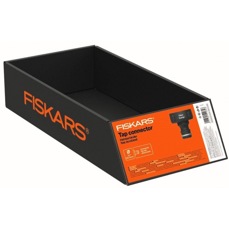 FISKARS spojka na kohútik Comfort je praktický adaptér pre bezpečné a tesné pripojenie záhradnej hadice k zdroju vody. Určená je pre závit vodovodného kohútika O 33,3 mm (G 1”), čím zabezpečí pevné a spoľahlivé spojenie.