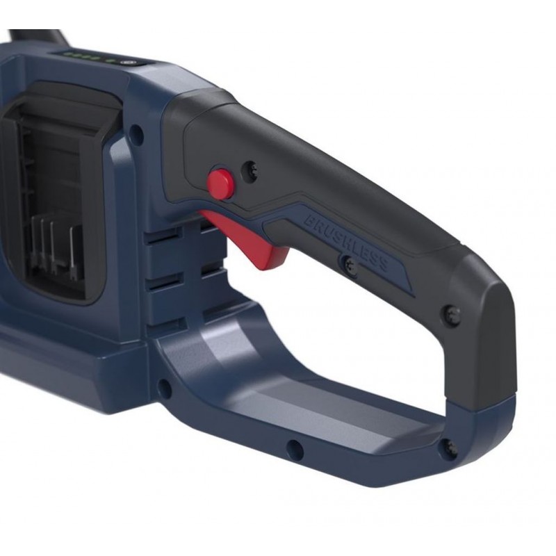 Akumulátorová píla je navrhnutá pre pohodlnú manipuláciu a bezpečnú prácu. Vďaka ergonomickému prevedeniu a vyváženej konštrukcii umožňuje efektívne rezanie bez zbytočnej námahy.
