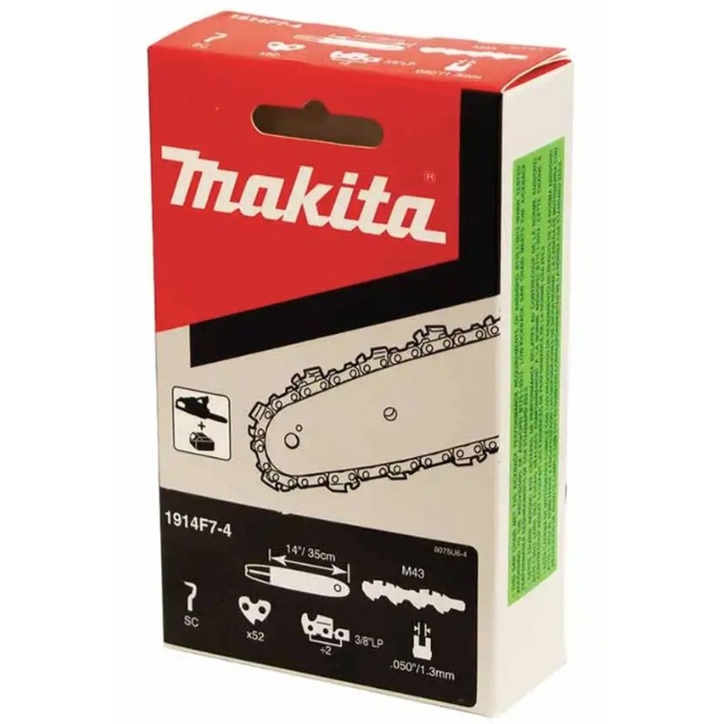 Pílová reťaz MAKITA 1914F7-4 Basic 35 cm patrí do novej série nízkoprofilových reťazí pre reťazové píly. V porovnaní s modelmi 90 PX a 91 PX ponúka nižšiu cenu pri zachovaní kvality značky MAKITA.