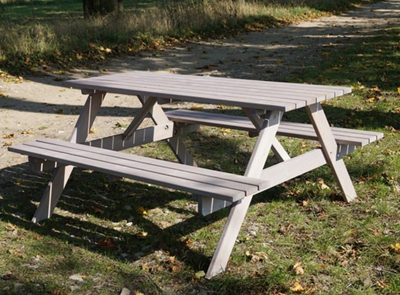 Zostava sa skladá zo stola a dvoch lavíc, ktoré sú pripojené k stolu.